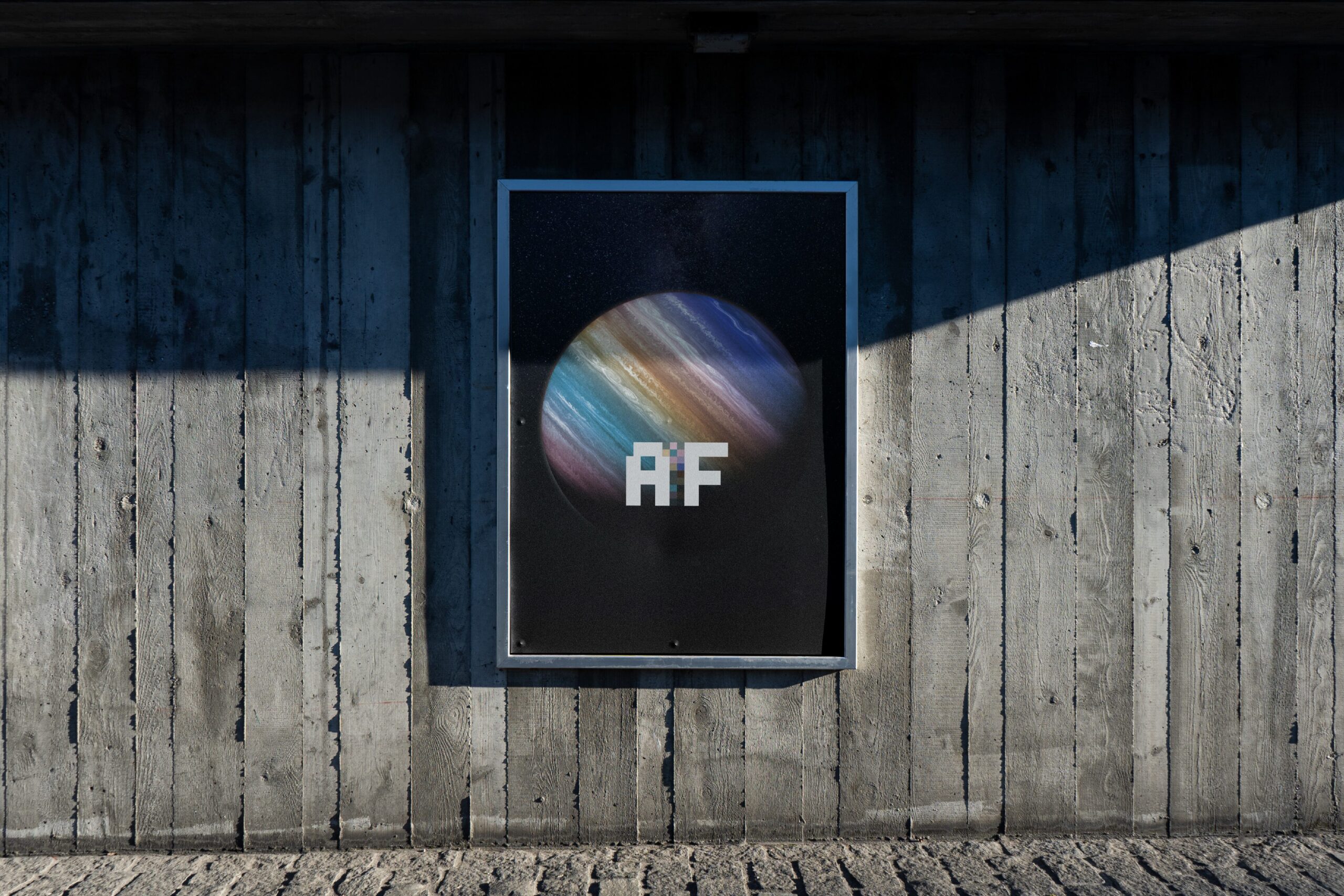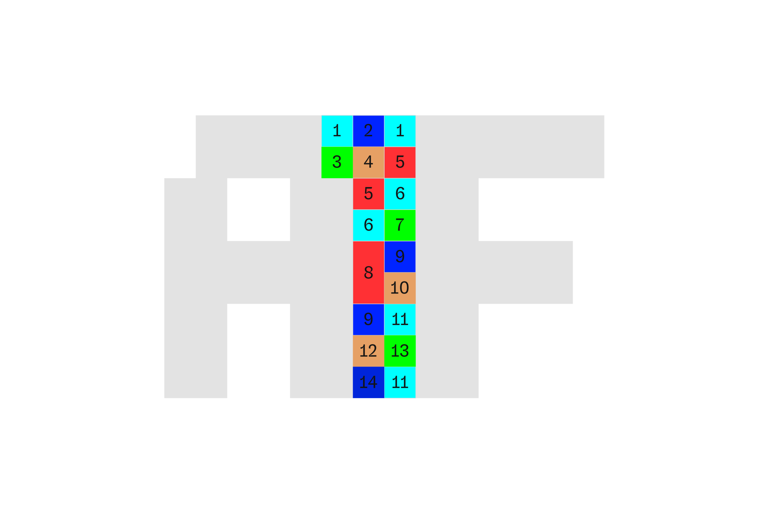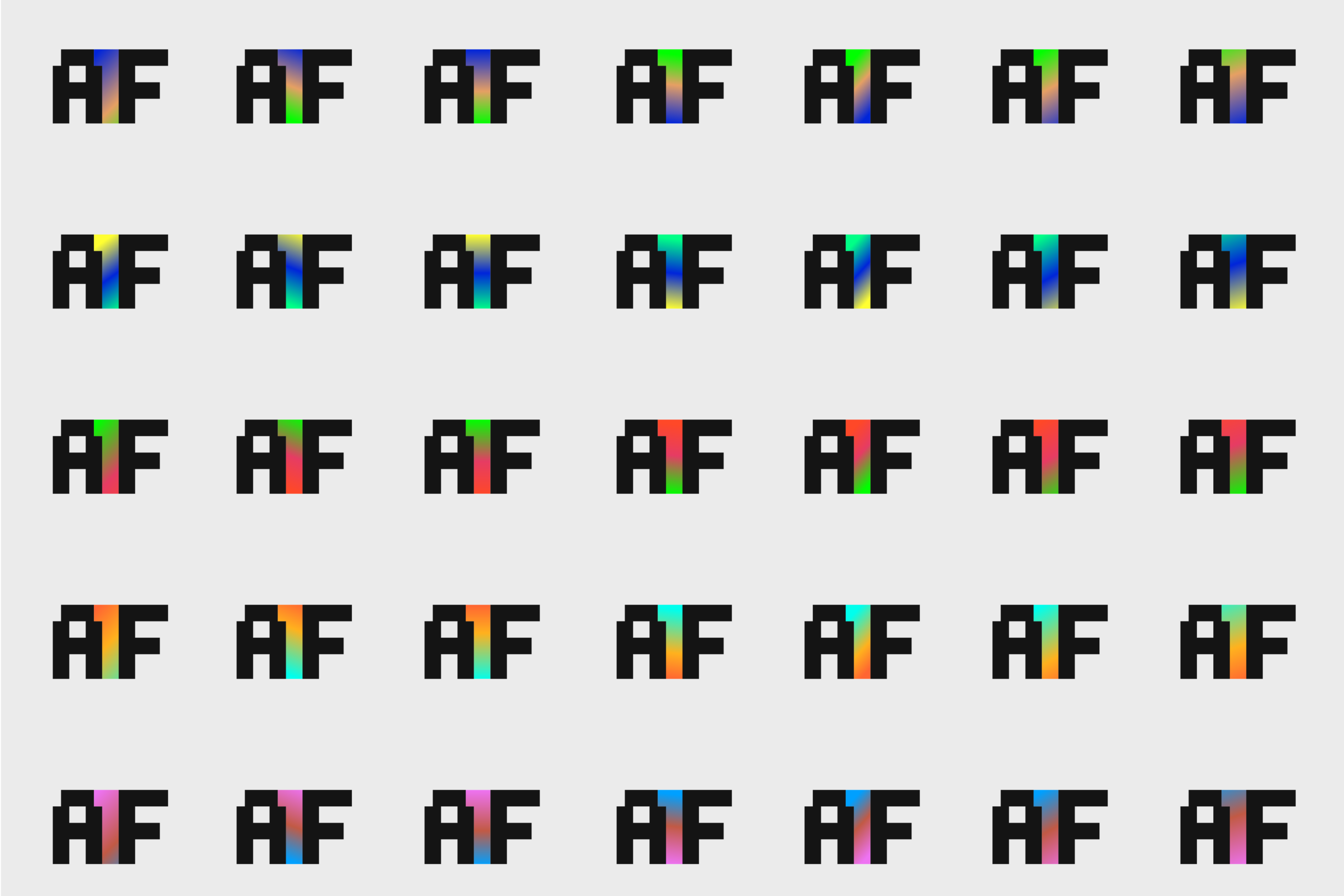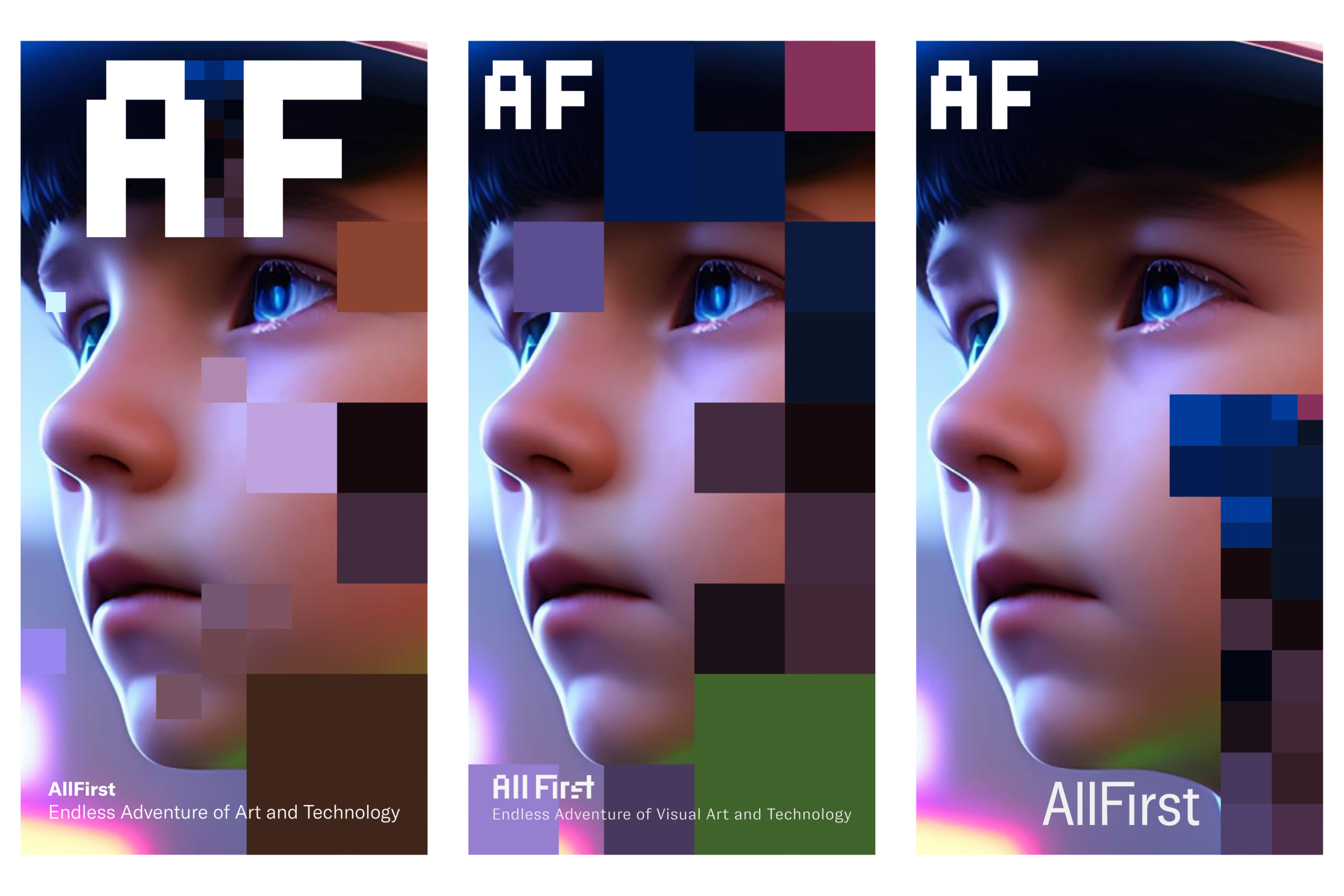 Inspired by the motif of square digital pixels. It is designed based on a strict right-angle grid, ensuring that the number "1", symbolizing "First," is visible between the alphabet A and F.