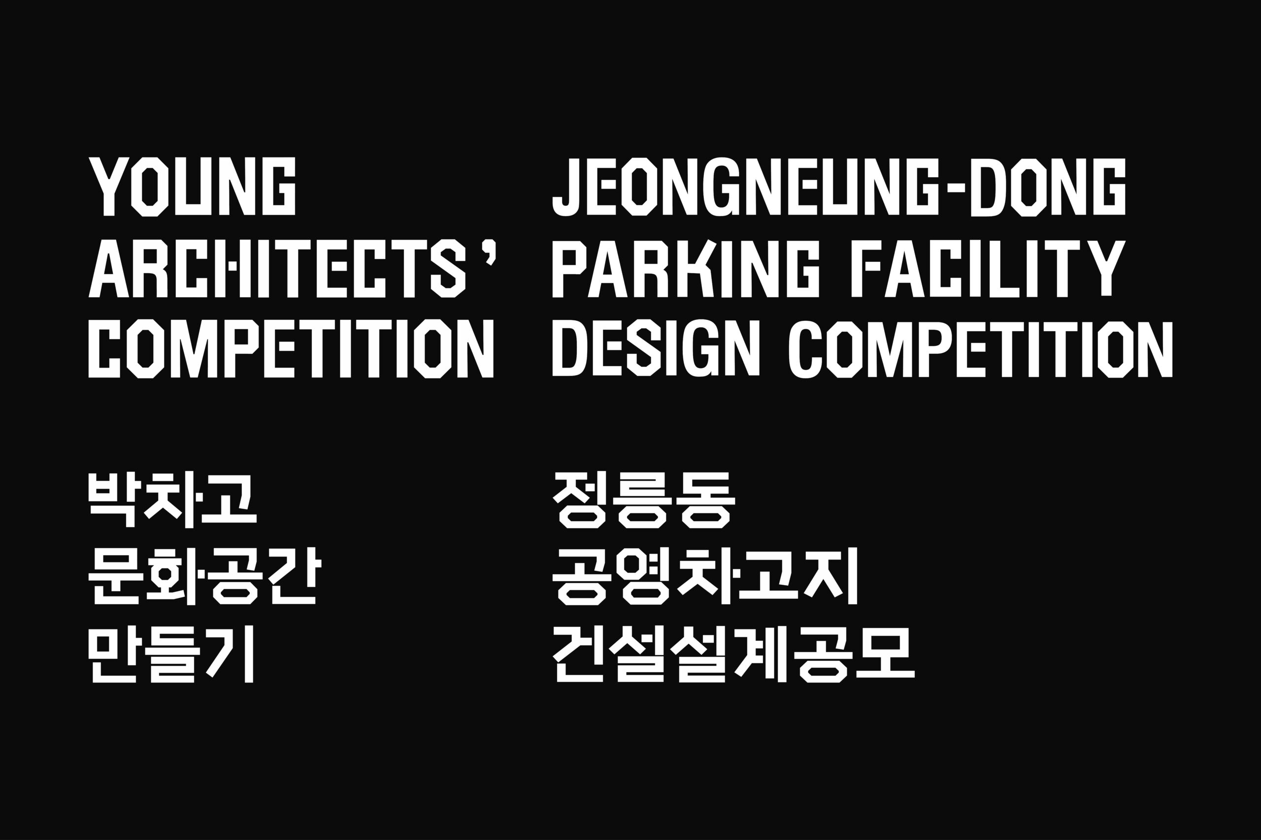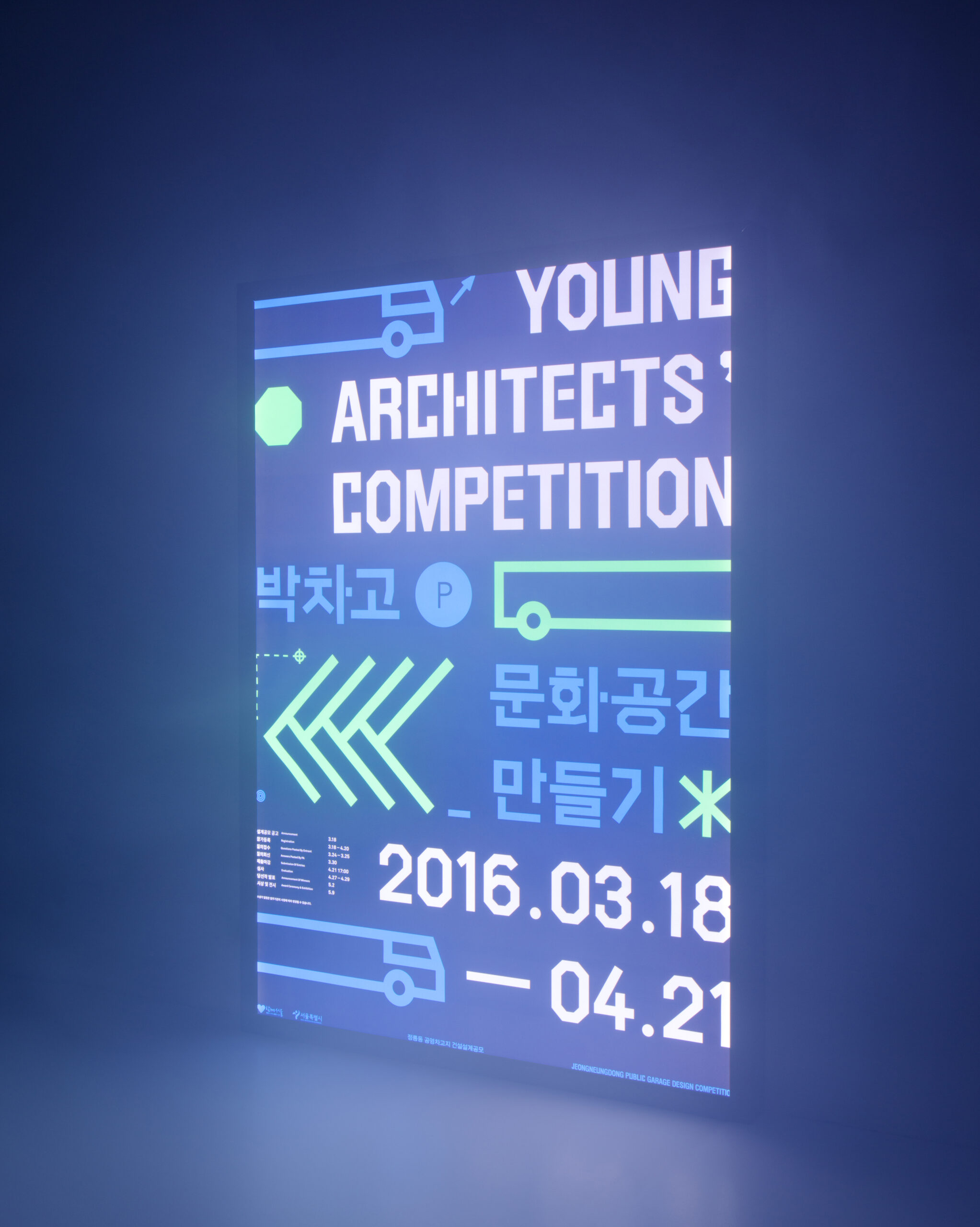 We designed stencil-like typeface and icons to highlight two important parts of the design competition: that the Competition is targeting young architects and that the site was a public facility.